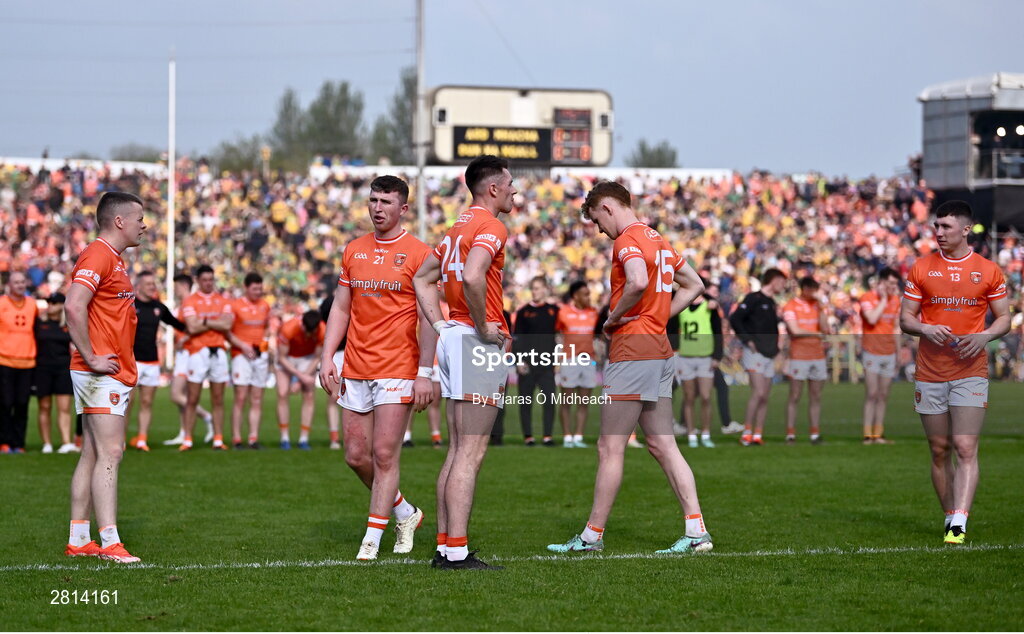 12 May 2024; Armagh penalty takers, from left, Aidan Nugent, Tiernan Kelly, Shane McPartlan, Conor Turbitt and Oisin Conaty during the penalty shoot-out of the Ulster GAA Football Senior Championship final match between Armagh and Donegal at St Tiernach's Park in Clones, Monaghan. Photo by Piaras Ó Mídheach/Sportsfile