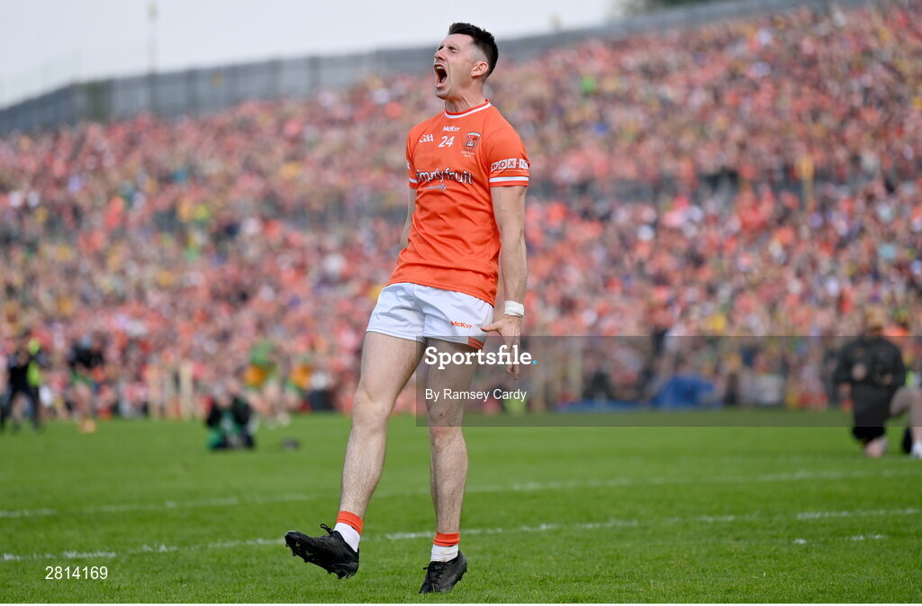 12 May 2024; Shane McPartlan of Armagh reacts after a missed penalty during the Ulster GAA Football Senior Championship final match between Armagh and Donegal at St Tiernach's Park in Clones, Monaghan. Photo by Ramsey Cardy/Sportsfile