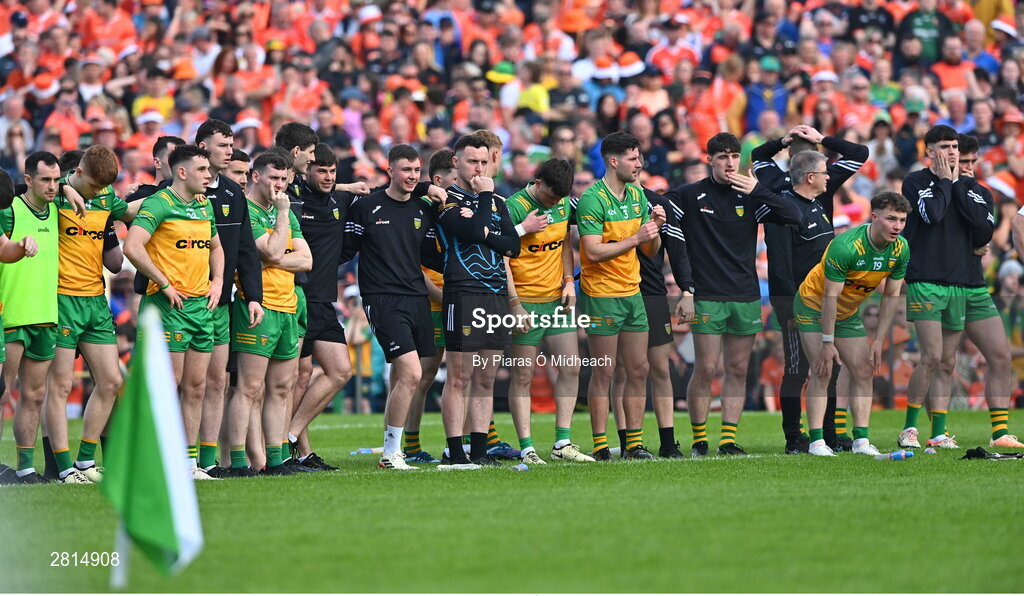 12 May 2024; Donegal players during the penalty shoot-out of the Ulster GAA Football Senior Championship final match between Armagh and Donegal at St Tiernach's Park in Clones, Monaghan. Photo by Piaras Ó Mídheach/Sportsfile