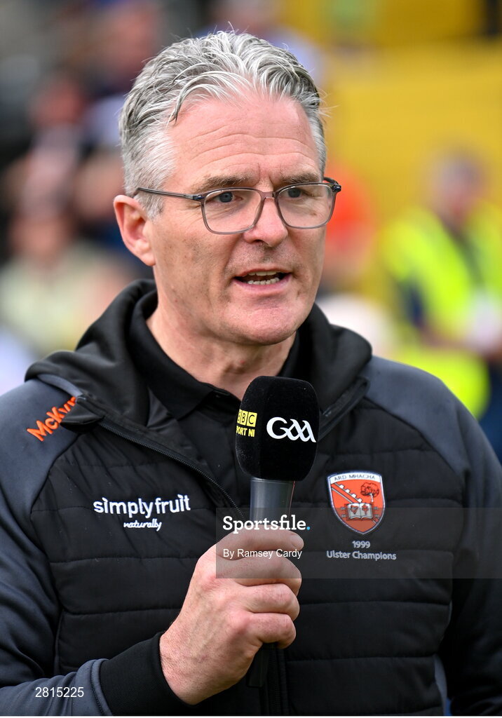 12 May 2024; Uachtarán Chumann Lúthchleas Gael Jarlath Burns before the Ulster GAA Football Senior Championship final match between Armagh and Donegal at St Tiernach's Park in Clones, Monaghan. Photo by Ramsey Cardy/Sportsfile