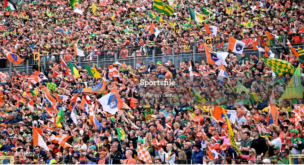 12 May 2024; Supporters during the Ulster GAA Football Senior Championship final match between Armagh and Donegal at St Tiernach's Park in Clones, Monaghan. Photo by Ramsey Cardy/Sportsfile