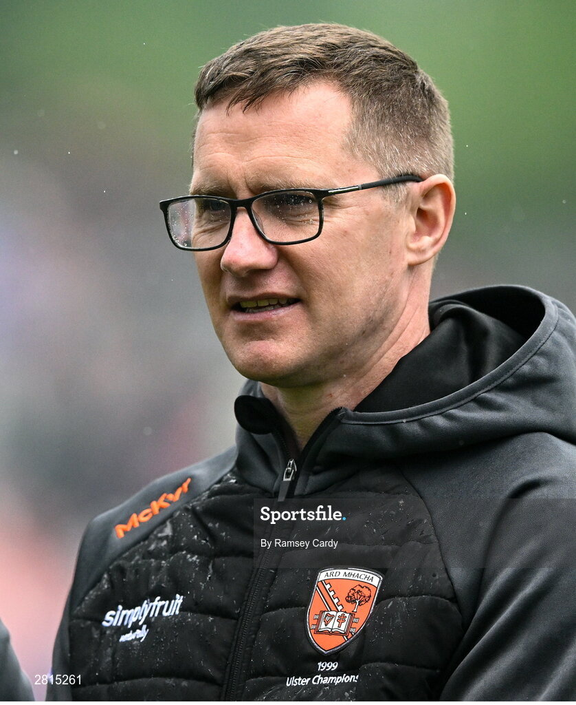12 May 2024; Tony McEntee on the pitch as their Armagh 1999 Ulster Football Senior Championship winning team were honoured at half-time in the Ulster GAA Football Senior Championship final match between Armagh and Donegal at St Tiernach's Park in Clones, Monaghan. Photo by Ramsey Cardy/Sportsfile