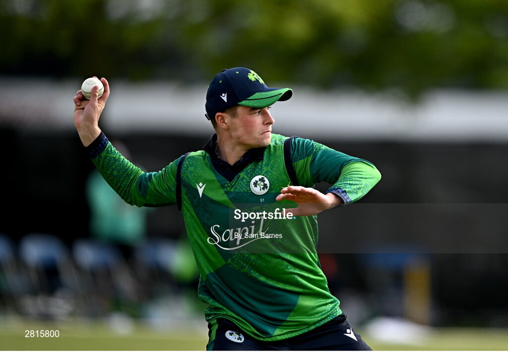 14 May 2024; Neil Rock of Ireland fields the ball during match three of the Floki Men's T20 International Series between Ireland and Pakistan at Castle Avenue Cricket Ground in Dublin. Photo by Sam Barnes/Sportsfile