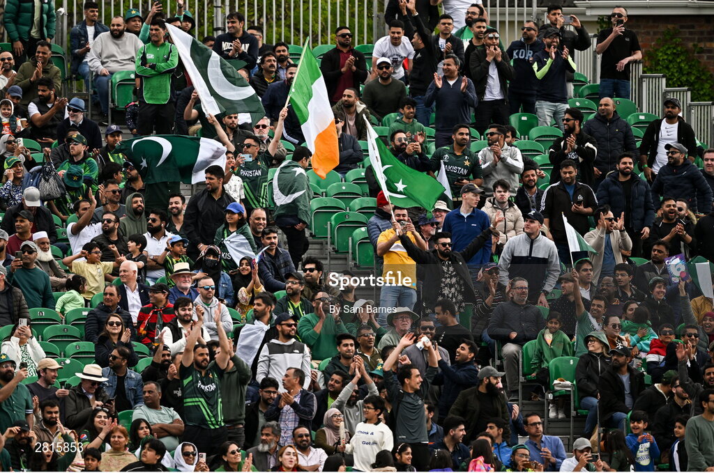 14 May 2024; Spectators during match three of the Floki Men's T20 International Series between Ireland and Pakistan at Castle Avenue Cricket Ground in Dublin. Photo by Sam Barnes/Sportsfile