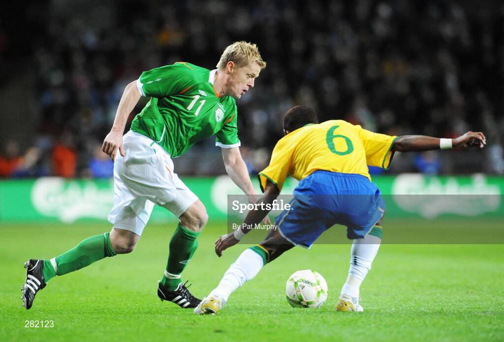 6 February 2008; Damien Duff, Republic of Ireland, in action against Richarlyson Felisbino, Brazil. International Friendly, Republic of Ireland v Brazil, Croke Park, Dublin. Picture credit; Pat Murphy / SPORTSFILE
