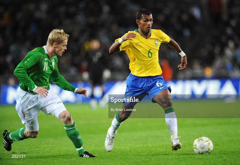 6 February 2008; Richarlyson Felisbino, Brazil, in action against Damien Duff, Republic of Ireland. International Friendly, Republic of Ireland v Brazil, Croke Park, Dublin. Picture credit; Brian Lawless / SPORTSFILE