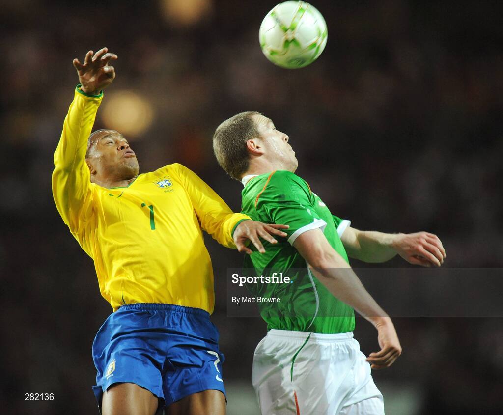 6 February 2008; Richard Dunne, Republic of Ireland, in action against Julio Baptista, Brazil. International Friendly, Republic of Ireland v Brazil, Croke Park, Dublin. Picture credit; Matt Browne / SPORTSFILE
