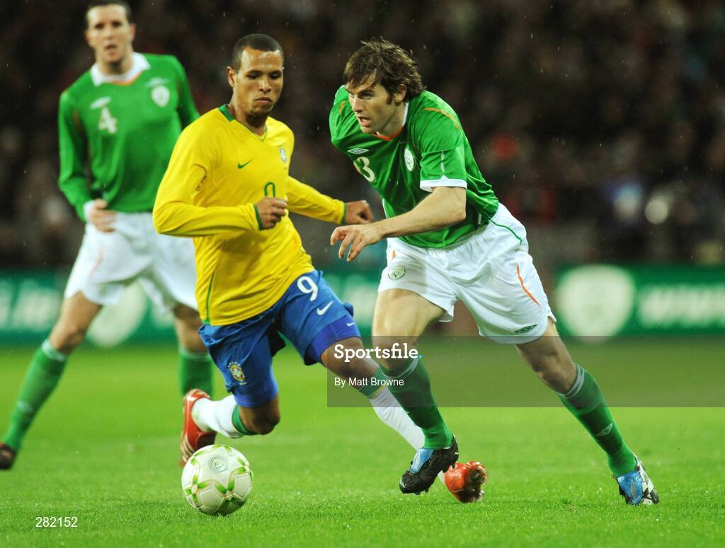 6 February 2008; Kevin Kilbane, Republic of Ireland, in action against Luis Fabiano Clemente, Brazil. International Friendly, Republic of Ireland v Brazil, Croke Park, Dublin. Picture credit; Matt Browne / SPORTSFILE