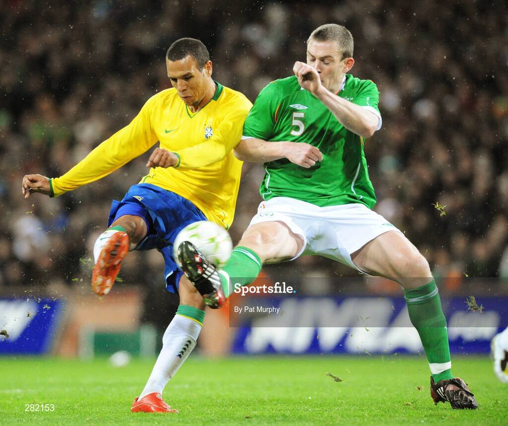 6 February 2008; Luis Fabiano, Brazil, in action against Richard Dunne, Republic of Ireland. International Friendly, Republic of Ireland v Brazil, Croke Park, Dublin. Picture credit; Pat Murphy / SPORTSFILE *** Local Caption ***