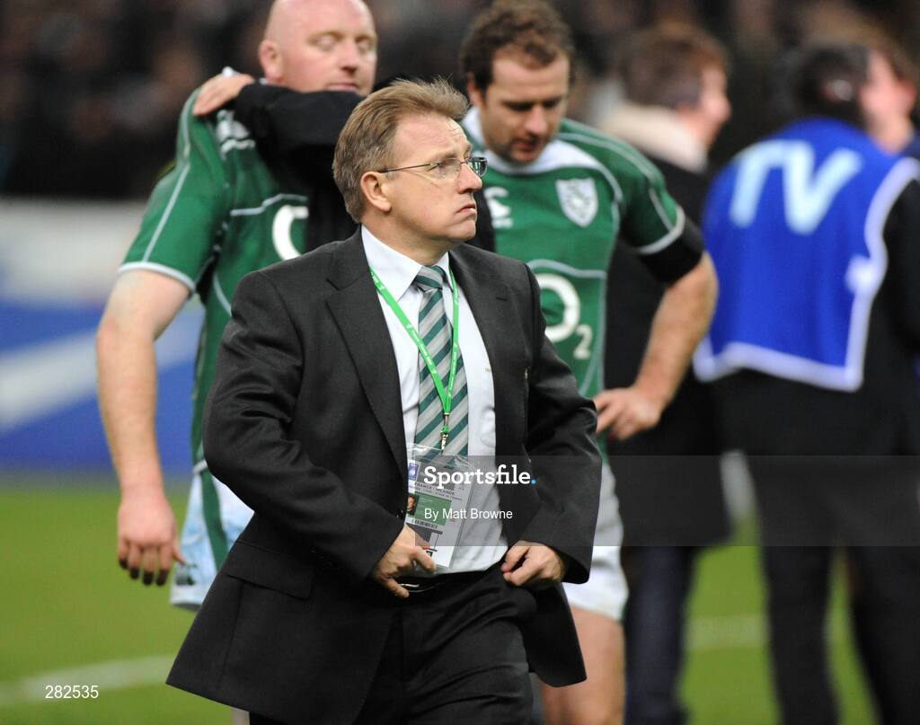9 February 2008; Ireland head coach Eddie O'Sullivan leaves the field after the final whistle. RBS Six Nations Rugby Championship, France v Ireland, Stade De France, Paris, France. Picture credit; Matt Browne / SPORTSFILE