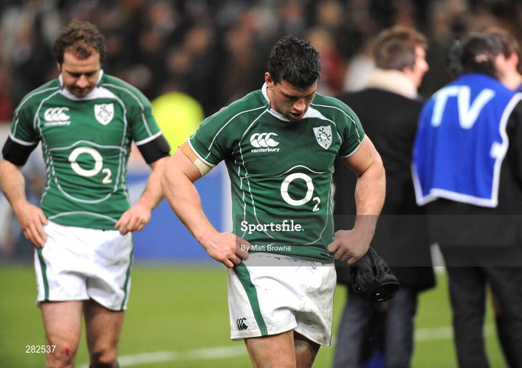 9 February 2008; Ireland's Denis Leamy, right, and Geordan Murphy leave the field after the final whistle. RBS Six Nations Rugby Championship, France v Ireland, Stade De France, Paris, France. Picture credit; Matt Browne / SPORTSFILE