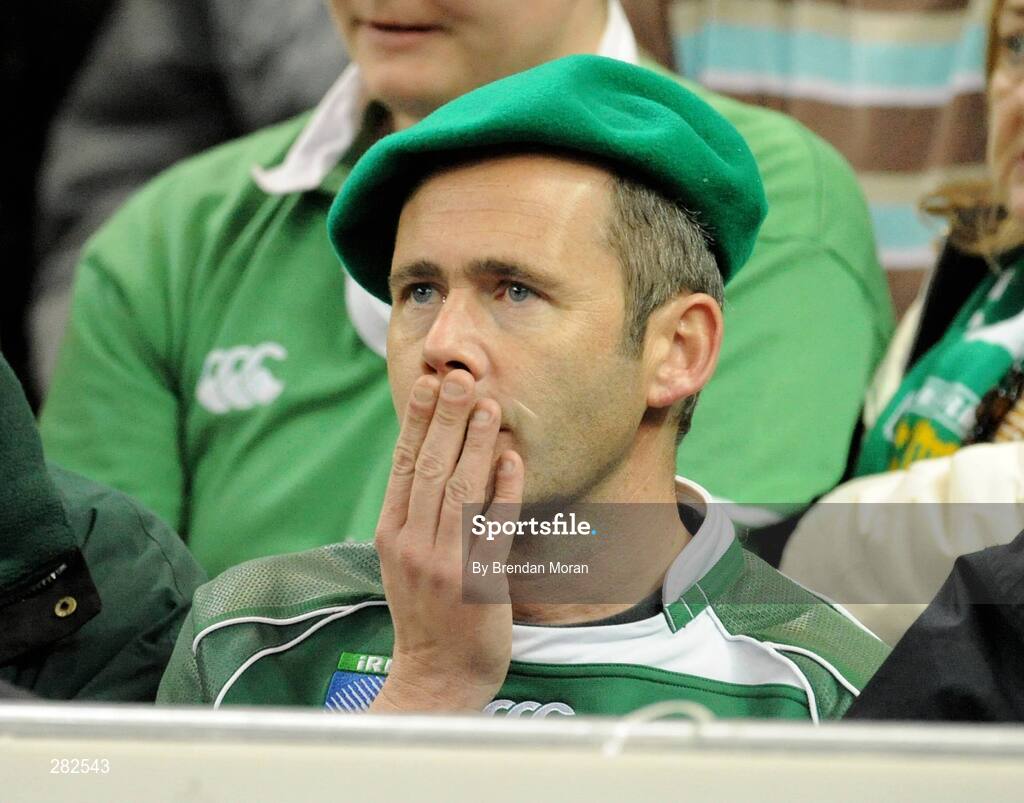 9 February 2008; An Irish rugby fan watches the game. RBS Six Nations Rugby Championship, France v Ireland, Stade De France, Paris, France. Picture credit; Brendan Moran / SPORTSFILE *** Local Caption ***