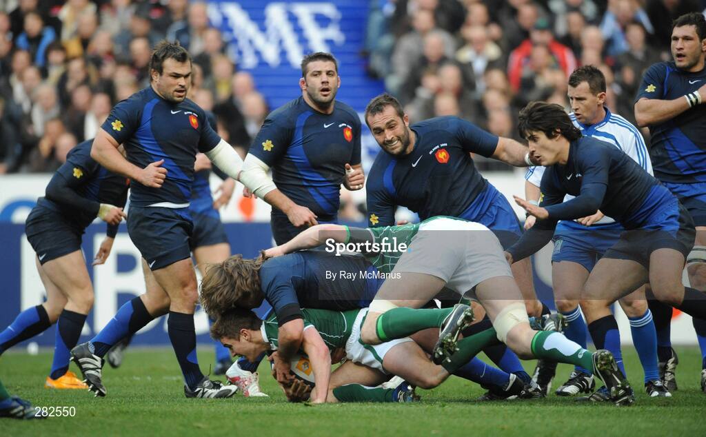 9 February 2008; Eoin Reddan, Ireland, is tackled by Dimitri Szarzewski, France. RBS Six Nations Rugby Championship, France v Ireland, Stade De France, Paris, France. Picture credit; Ray McManus / SPORTSFILE