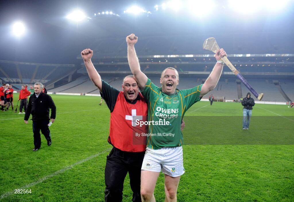 9 February 2008; Paidi Walsh and Enda Loughlin, right, Clonkill, celebrate after the match. All Ireland Intermediate Club Hurling Championship Final, Tomas Larkins, Galway v Clonkill, Westmeath, Croke Park, Dublin. Picture credit; Stephen McCarthy / SPORTSFILE