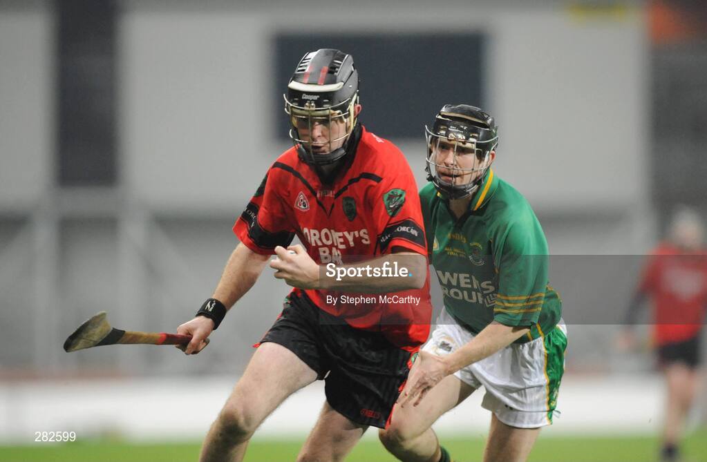 9 February 2008; James Rohan, Tomas Larkins, in action against Darragh Ayres, Clonkill. All Ireland Intermediate Club Hurling Championship Final, Tomas Larkins, Galway v Clonkill, Westmeath, Croke Park, Dublin. Picture credit; Stephen McCarthy / SPORTSFILE