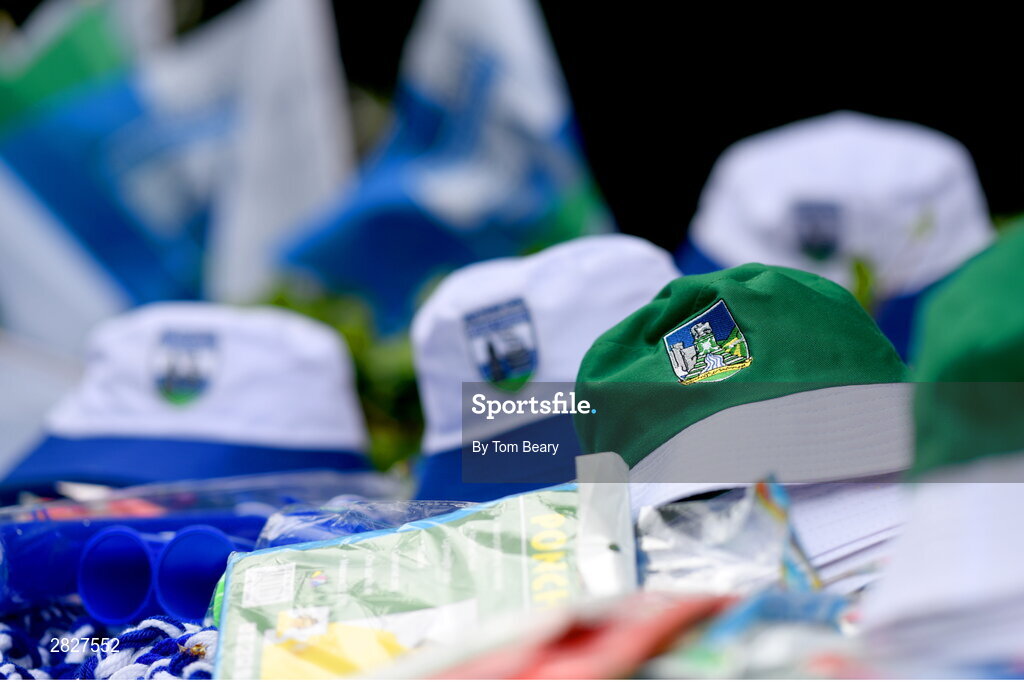 26 May 2024; A view of merchandise on sale outside the ground before the Munster GAA Hurling Senior Championship Round 5 match between Limerick and Waterford at TUS Gaelic Grounds in Limerick Photo by Tom Beary/Sportsfile