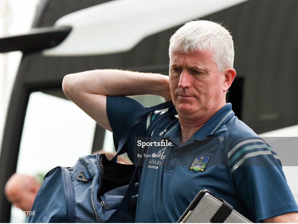 26 May 2024; Limerick manager John Kiely arrives before the Munster GAA Hurling Senior Championship Round 5 match between Limerick and Waterford at TUS Gaelic Grounds in Limerick Photo by Tom Beary/Sportsfile