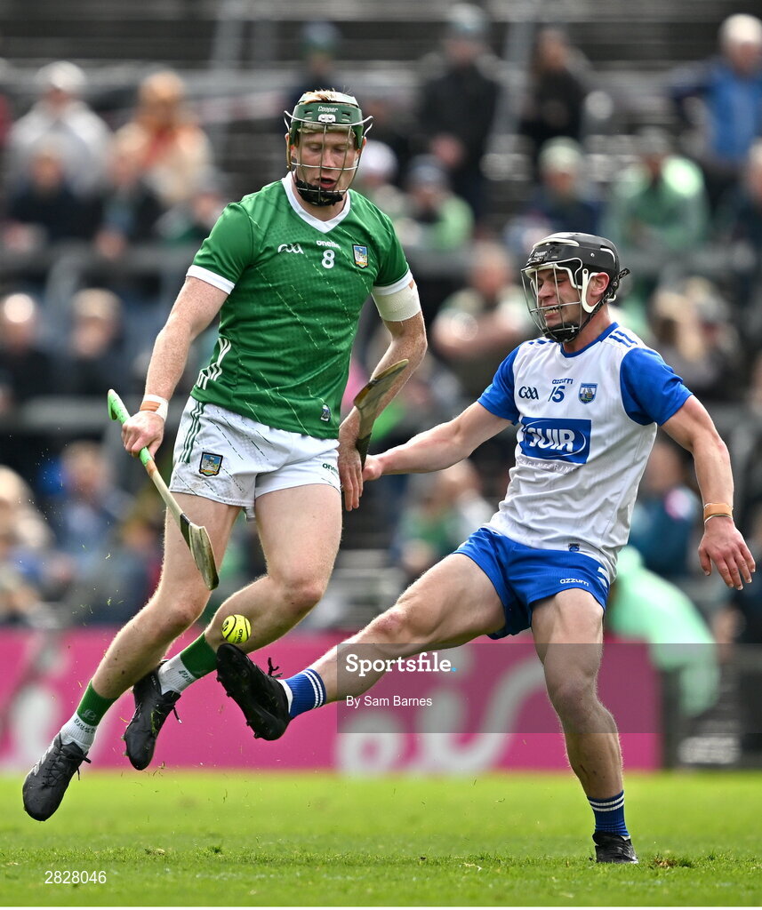 26 May 2024; Will O'Donoghue of Limerick in action against Kevin Mahony of Waterford during the Munster GAA Hurling Senior Championship Round 5 match between Limerick and Waterford at TUS Gaelic Grounds in Limerick Photo by Sam Barnes/Sportsfile