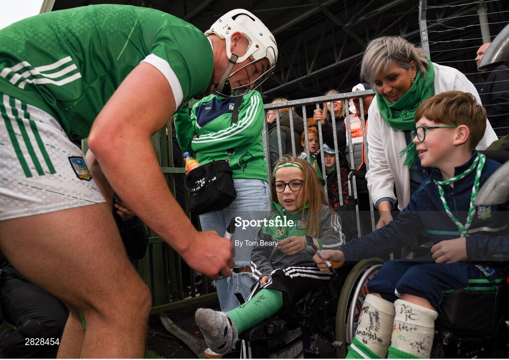 26 May 2024; Kyle Hayes of Limerick with Limerick supporters Nikki Hayes and Paddy O’Sullivan after the Munster GAA Hurling Senior Championship Round 5 match between Limerick and Waterford at TUS Gaelic Grounds in Limerick Photo by Tom Beary/Sportsfile