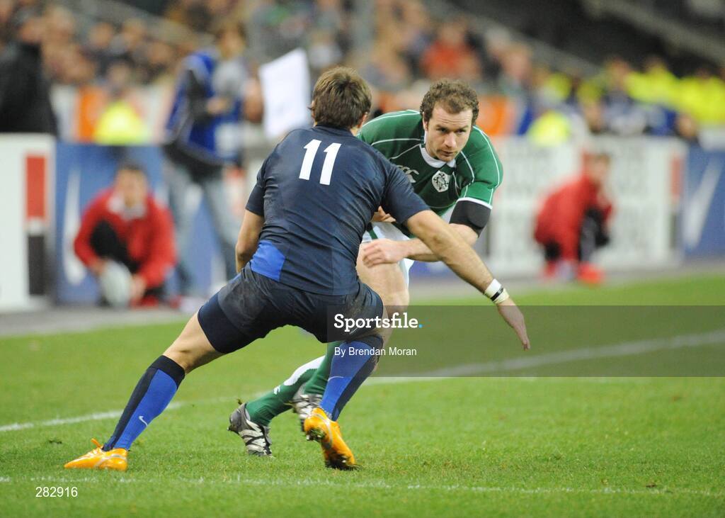 9 February 2008; Geordan Murphy, Ireland, in action against Vincent Clerc, France. RBS Six Nations Rugby Championship, France v Ireland, Stade De France, Paris, France. Picture credit; Brendan Moran / SPORTSFILE *** Local Caption ***