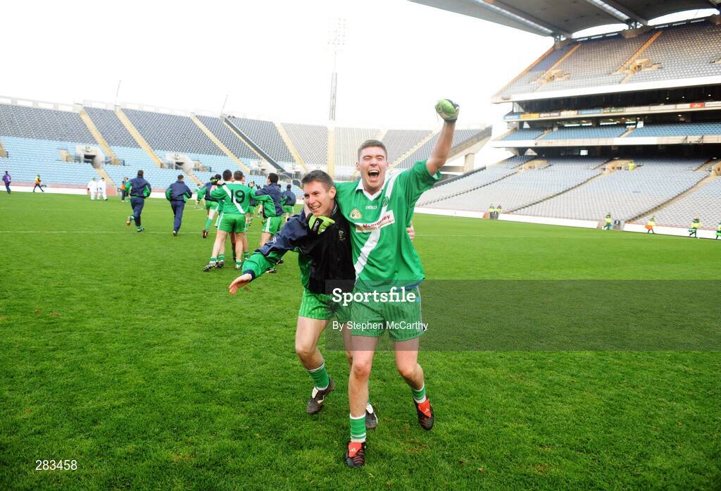 17 February 2008; Ruairi Grant, left, and Philip Lydon, Moycullen, celebrate after the match. All-Ireland Intermediate Club Football Championship Final, Moycullen, Galway v Fingal Ravens, Dublin, Croke Park, Dublin. Picture credit; Stephen McCarthy / SPORTSFILE