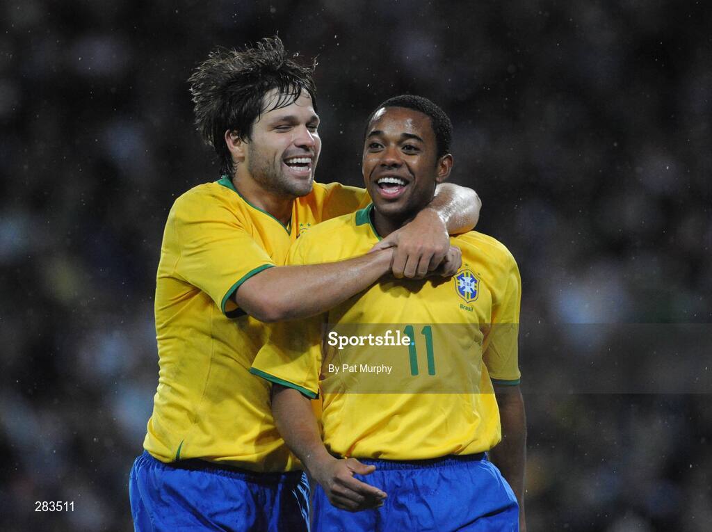 6 February 2008; Robinho, Brazil, celebrates with team-mate Diego Ribas, left, after scoring his side's first goal. International Friendly, Republic of Ireland v Brazil, Croke Park, Dublin. Picture credit; Pat Murphy / SPORTSFILE *** Local Caption ***