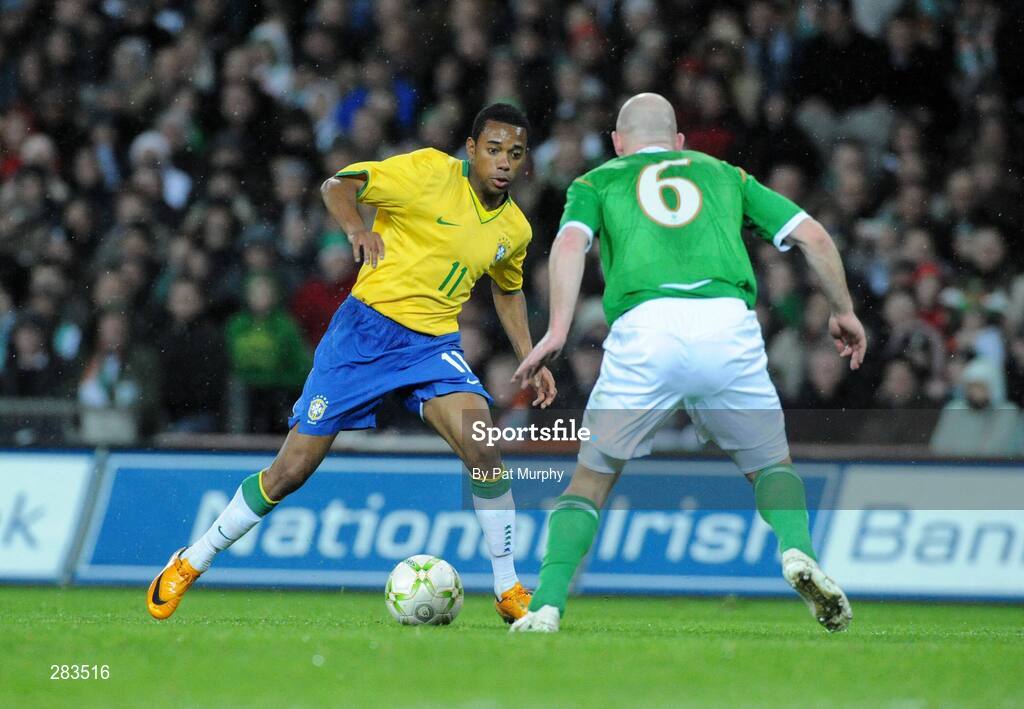 6 February 2008; Robinho, Brazil, in action against Lee Carsley, Republic of Ireland. International Friendly, Republic of Ireland v Brazil, Croke Park, Dublin. Picture credit; Pat Murphy / SPORTSFILE *** Local Caption ***