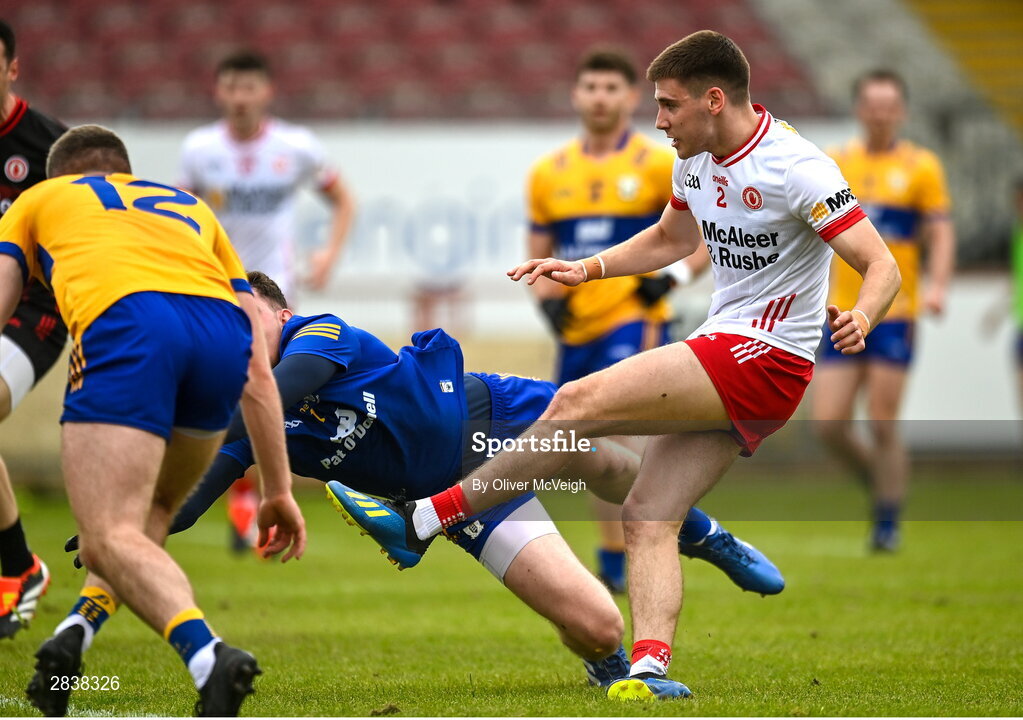 2 June 2024; Niall Devlin of Tyrone scoring his side's second goal during the GAA Football All-Ireland Senior Championship Round 2 match between Tyrone and Clare at O'Neill's Healy Park in Omagh, Tyrone. Photo by Oliver McVeigh/Sportsfile
