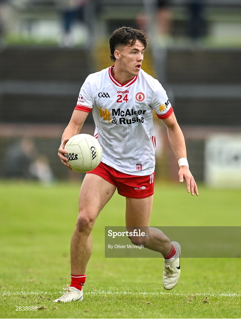 2 June 2024; Shea O'Hare of Tyrone who made his senior debut during the GAA Football All-Ireland Senior Championship Round 2 match between Tyrone and Clare at O'Neill's Healy Park in Omagh, Tyrone. Photo by Oliver McVeigh/Sportsfile