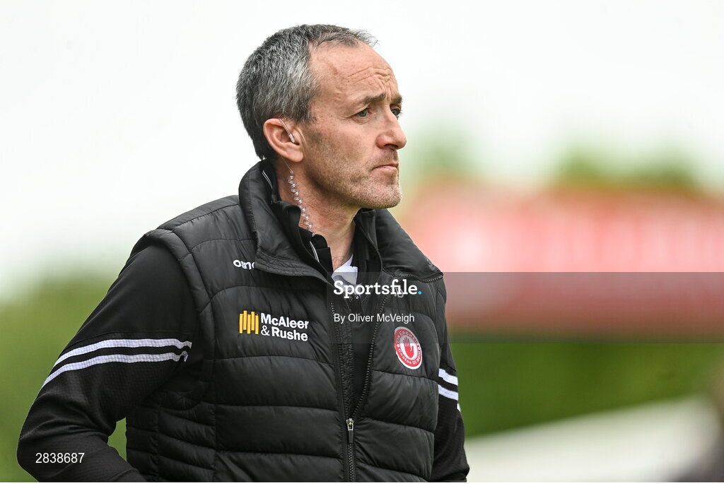 2 June 2024; Tyrone joint-manager Brian Dooher during the GAA Football All-Ireland Senior Championship Round 2 match between Tyrone and Clare at O'Neill's Healy Park in Omagh, Tyrone. Photo by Oliver McVeigh/Sportsfile