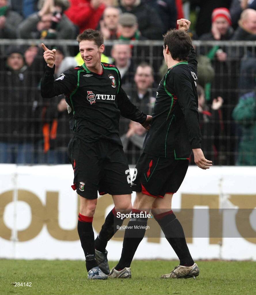 23 February 2008; Glentoran's Daryl Fordyce, left, celebrates his goal with team-mate Kyle Neill. Carnegie Premier league, Newry City v Glentoran, The Showgrounds, Newry, Co. Down. Picture credit; Oliver McVeigh / SPORTSFILE