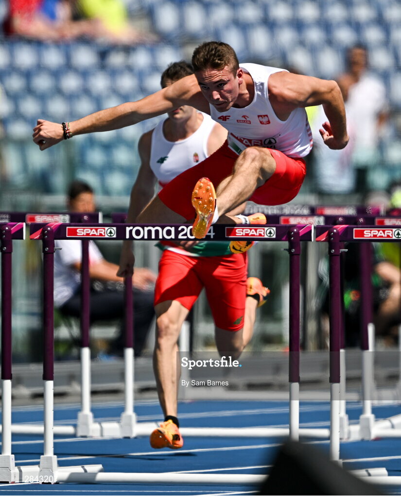 7 June 2024; Jacob Szymanski of Poland competing in the Men's 110m Hurdles heats during day one of the 2024 European Athletics Championships at the Stadio Olimpico in Rome, Italy. Photo by Sam Barnes/Sportsfile