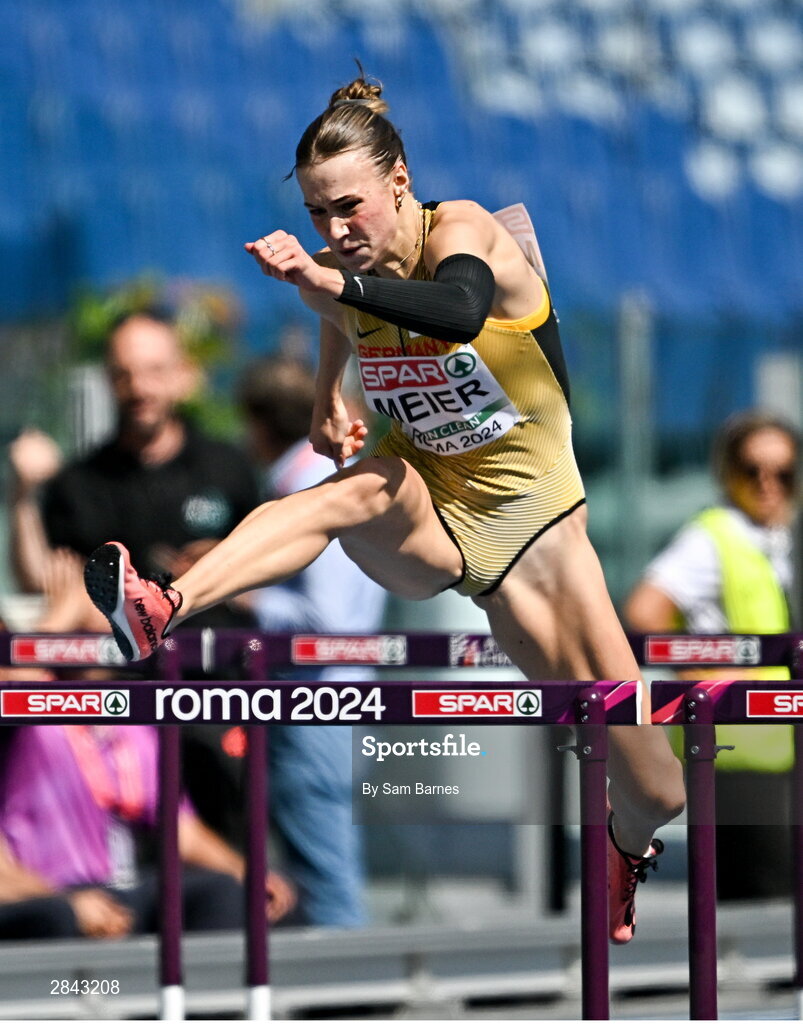 7 June 2024; Marlene Meier of Germany competes in the Women's 100m Hurdles heats during day one of the 2024 European Athletics Championships at the Stadio Olimpico in Rome, Italy. Photo by Sam Barnes/Sportsfile