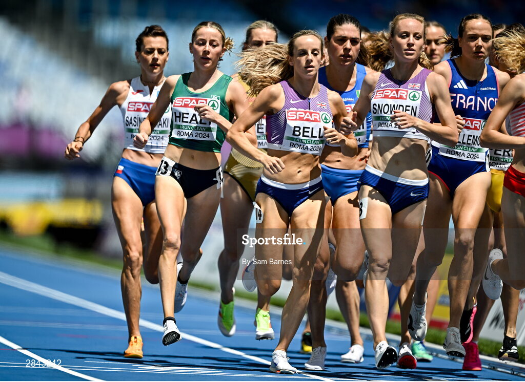 7 June 2024; Sarah Healy of Ireland, second from left, competes in the women's 1500m heat during day one of the 2024 European Athletics Championships at the Stadio Olimpico in Rome, Italy. Photo by Sam Barnes/Sportsfile