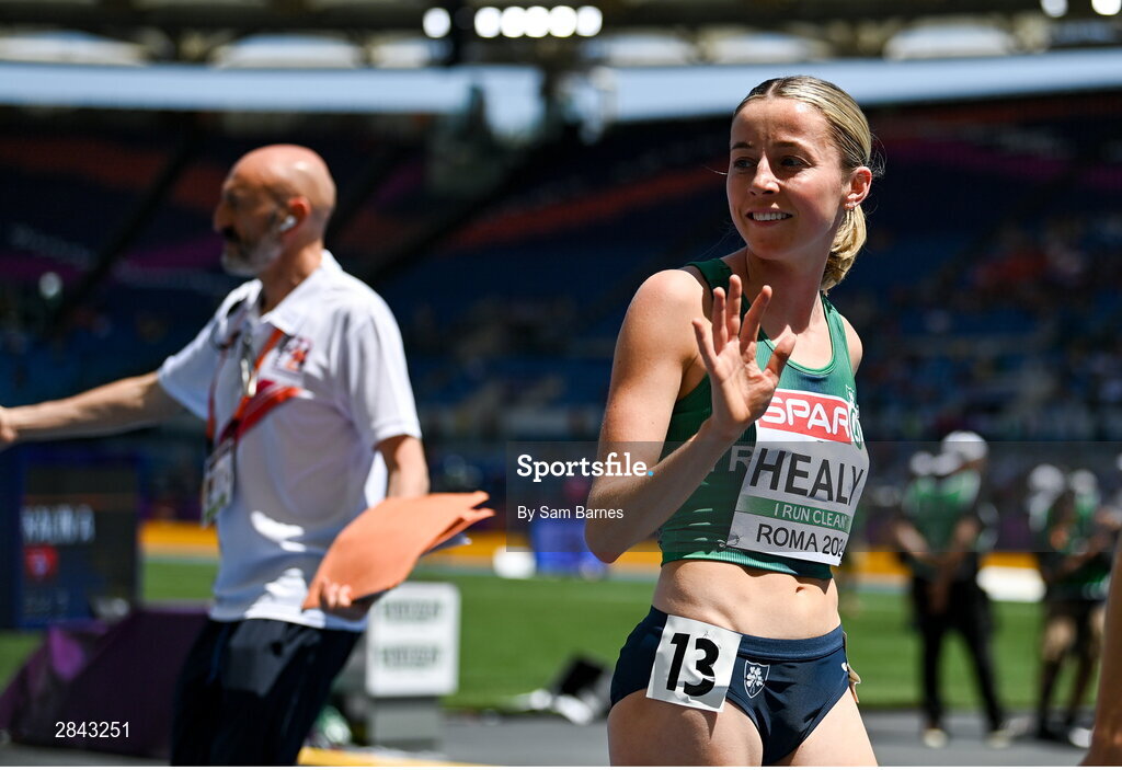 7 June 2024; Sarah Healy of Ireland after finishing fourth in her women's 1500m heat during day one of the 2024 European Athletics Championships at the Stadio Olimpico in Rome, Italy. Photo by Sam Barnes/Sportsfile