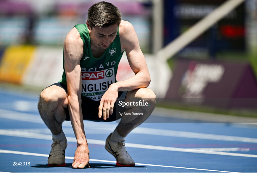 7 June 2024; Mark English of Ireland reacts after finishing fifth in the Men's 800m heats during day one of the 2024 European Athletics Championships at the Stadio Olimpico in Rome, Italy. Photo by Sam Barnes/Sportsfile