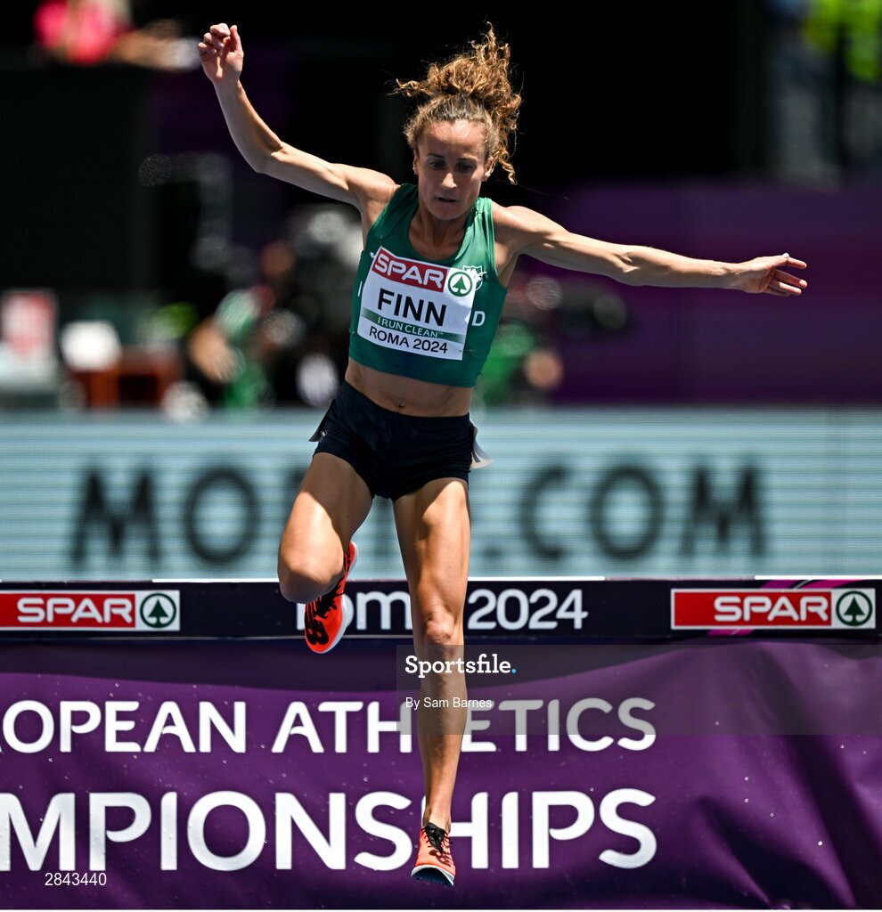 7 June 2024; Michelle Finn of Ireland competes in the Women's 3000m Steeplechase heat during day one of the 2024 European Athletics Championships at the Stadio Olimpico in Rome, Italy. Photo by Sam Barnes/Sportsfile