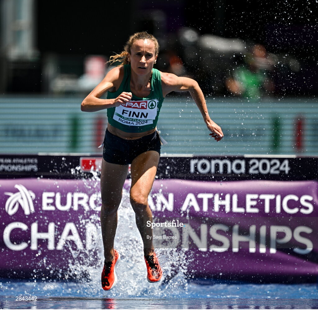 7 June 2024; Michelle Finn of Ireland competes in the Women's 3000m Steeplechase heat during day one of the 2024 European Athletics Championships at the Stadio Olimpico in Rome, Italy. Photo by Sam Barnes/Sportsfile