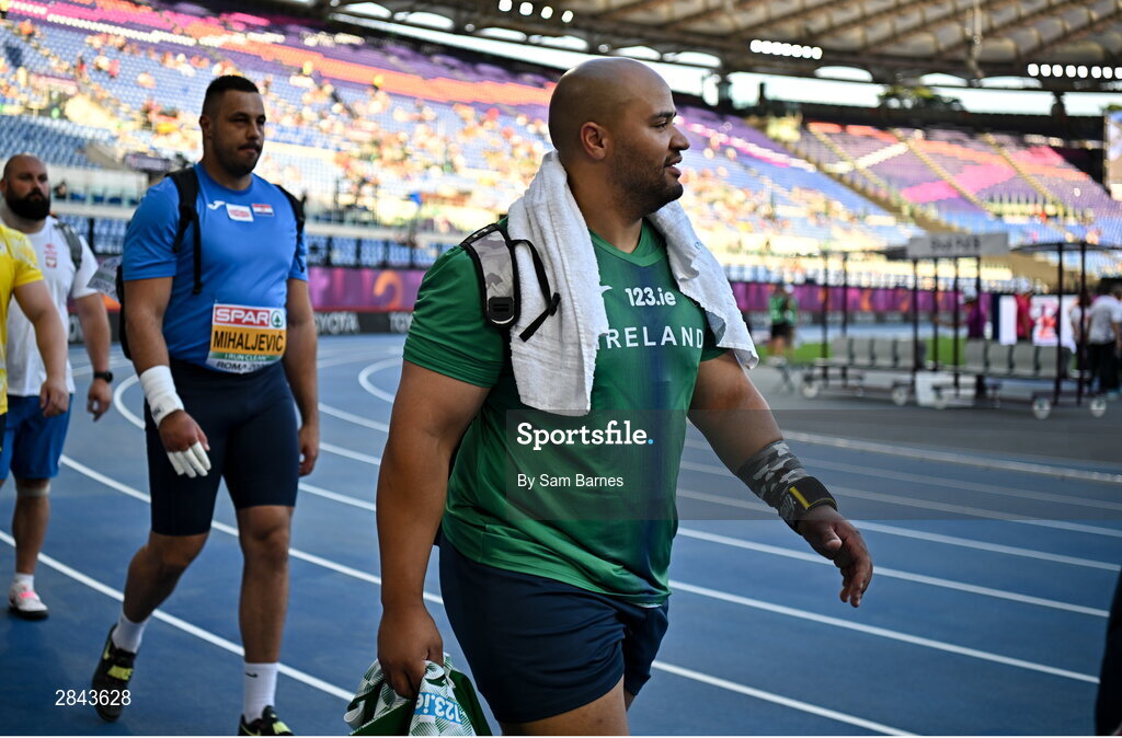 7 June 2024; Eric Favors of Ireland makes his way out to the men's shot put qualifying during day one of the 2024 European Athletics Championships at the Stadio Olimpico in Rome, Italy. Photo by Sam Barnes/Sportsfile