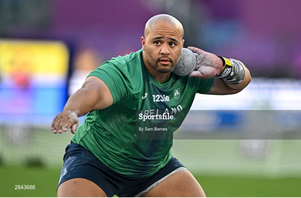 7 June 2024; Eric Favors of Ireland warms up before the men's shot put qualifying during day one of the 2024 European Athletics Championships at the Stadio Olimpico in Rome, Italy. Photo by Sam Barnes/Sportsfile