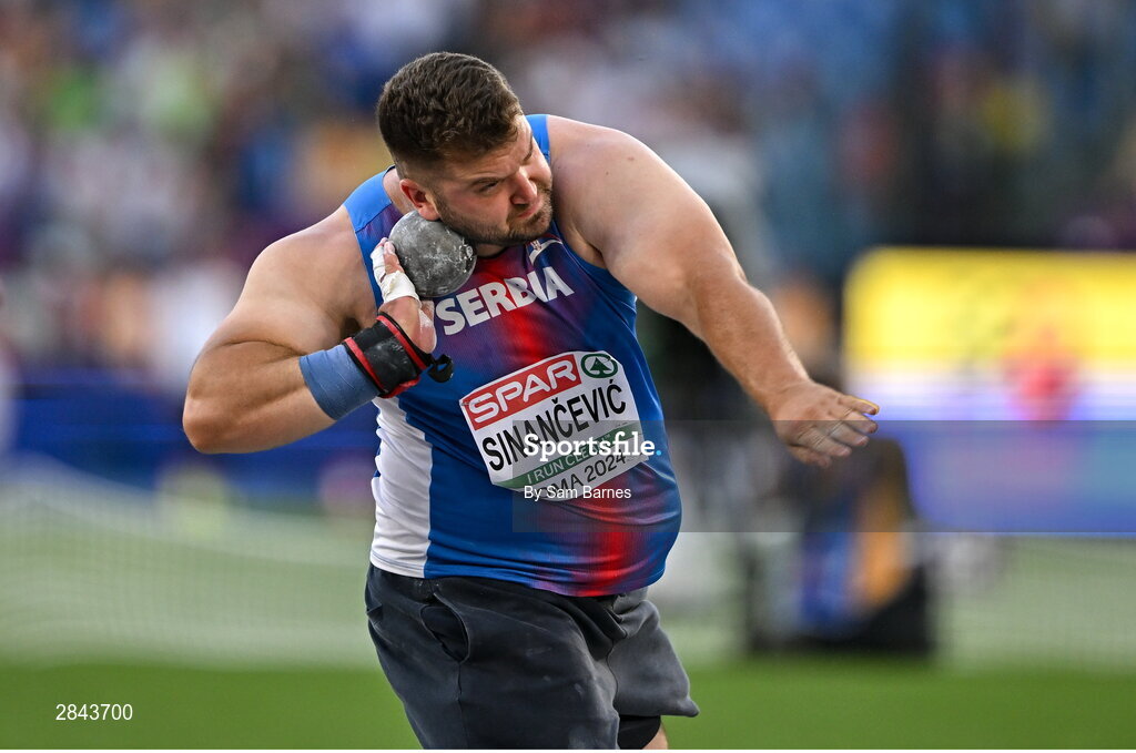 7 June 2024; Armin Sinancevic of Serbia competes in the Men's Shot Put qualifying during day one of the 2024 European Athletics Championships at the Stadio Olimpico in Rome, Italy. Photo by Sam Barnes/Sportsfile