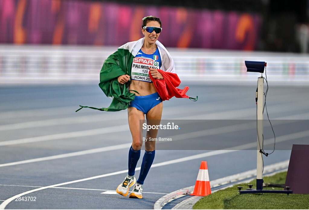 7 June 2024; Antonella Palmisano of Italy after winning the Women's 20k Race Walk final during day one of the 2024 European Athletics Championships at the Stadio Olimpico in Rome, Italy. Photo by Sam Barnes/Sportsfile