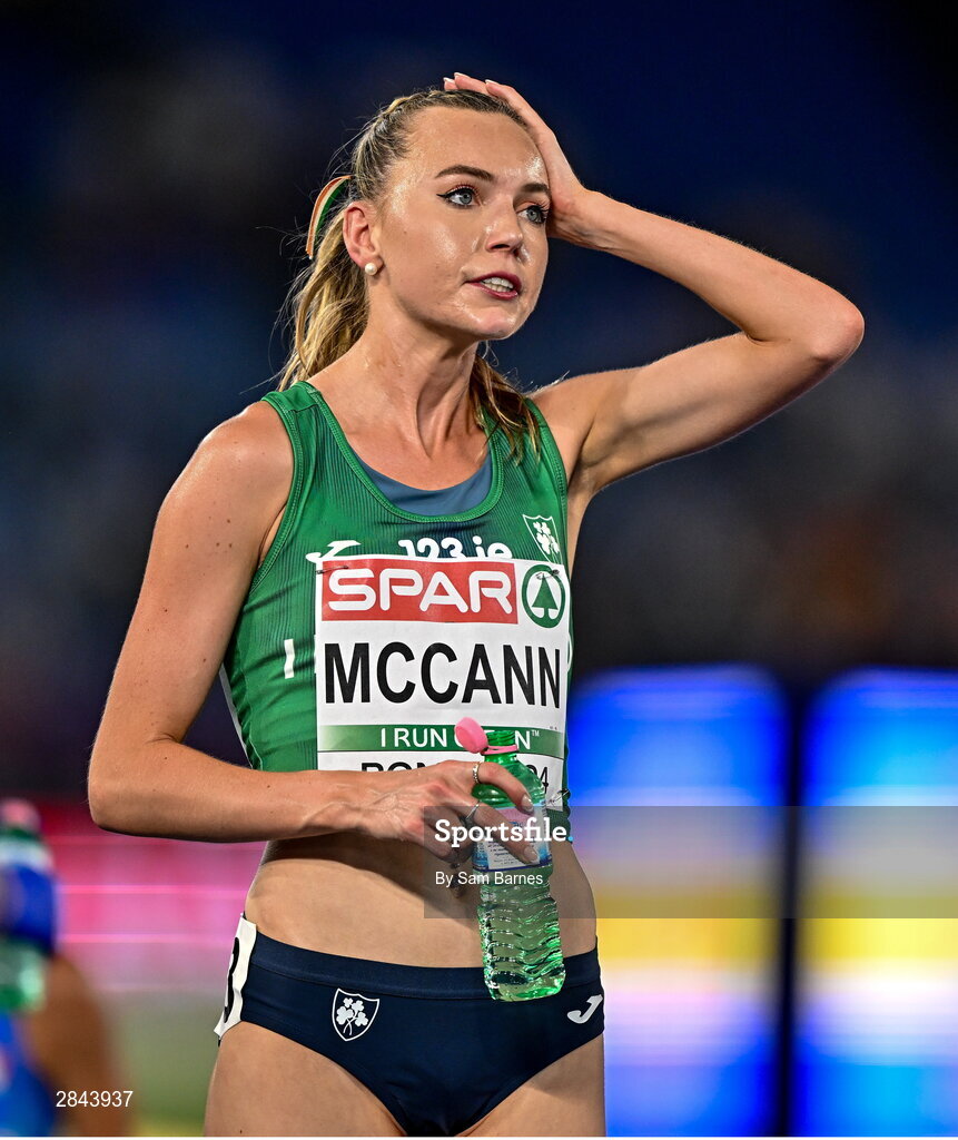 7 June 2024; Jodie McCann of Ireland reacts after competing in the Women's 5000m final during day one of the 2024 European Athletics Championships at the Stadio Olimpico in Rome, Italy. Photo by Sam Barnes/Sportsfile