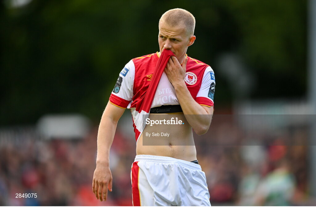 13 June 2024; Tom Grivosti of St Patrick's Athletic during the SSE Airtricity Men's Premier Division match between St Patrick's Athletic and Shamrock Rovers at Richmond Park in Dublin. Photo by Seb Daly/Sportsfile