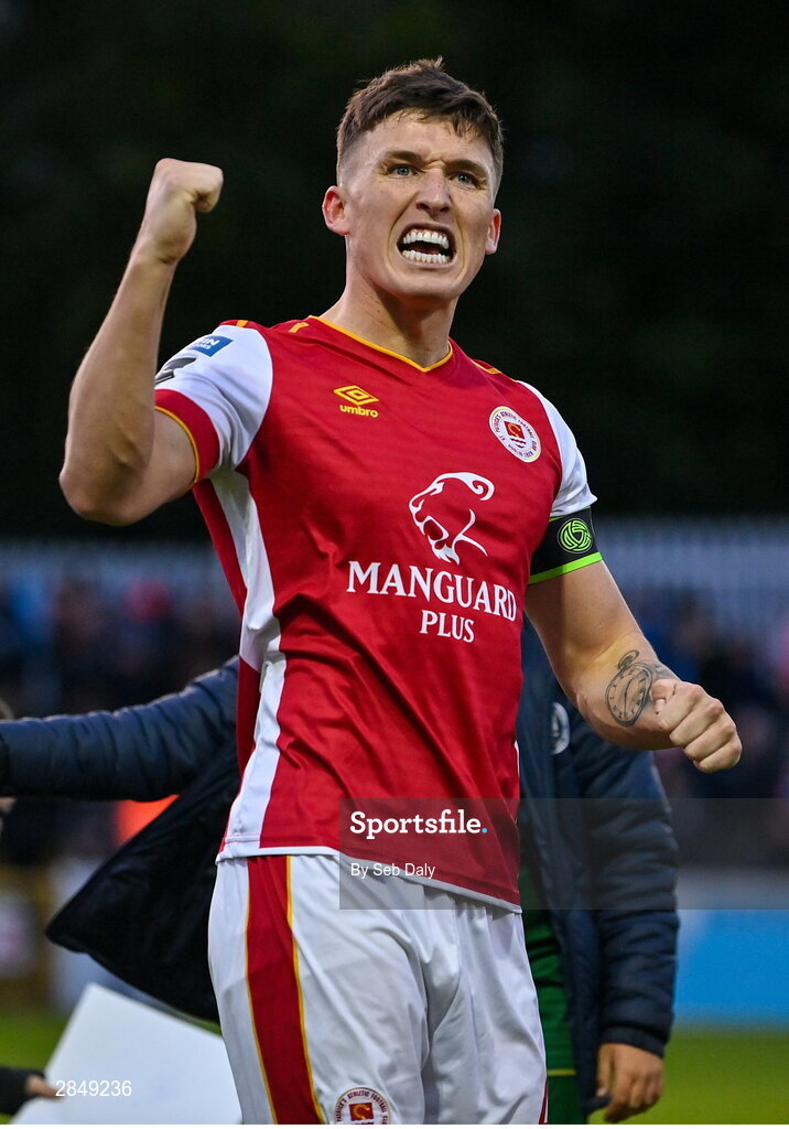 13 June 2024; Joe Redmond of St Patrick's Athletic of St Patrick's Athletic after his side's victory in the SSE Airtricity Men's Premier Division match between St Patrick's Athletic and Shamrock Rovers at Richmond Park in Dublin. Photo by Seb Daly/Sportsfile