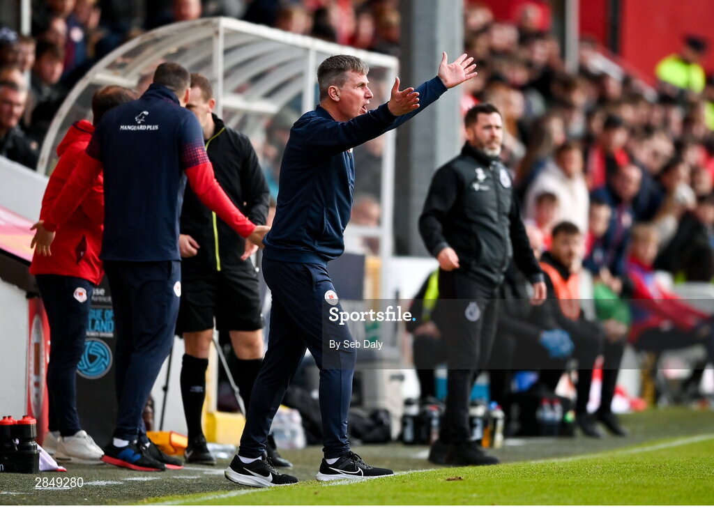 13 June 2024; St Patrick's Athletic manager Stephen Kenny reacts during the SSE Airtricity Men's Premier Division match between St Patrick's Athletic and Shamrock Rovers at Richmond Park in Dublin. Photo by Seb Daly/Sportsfile