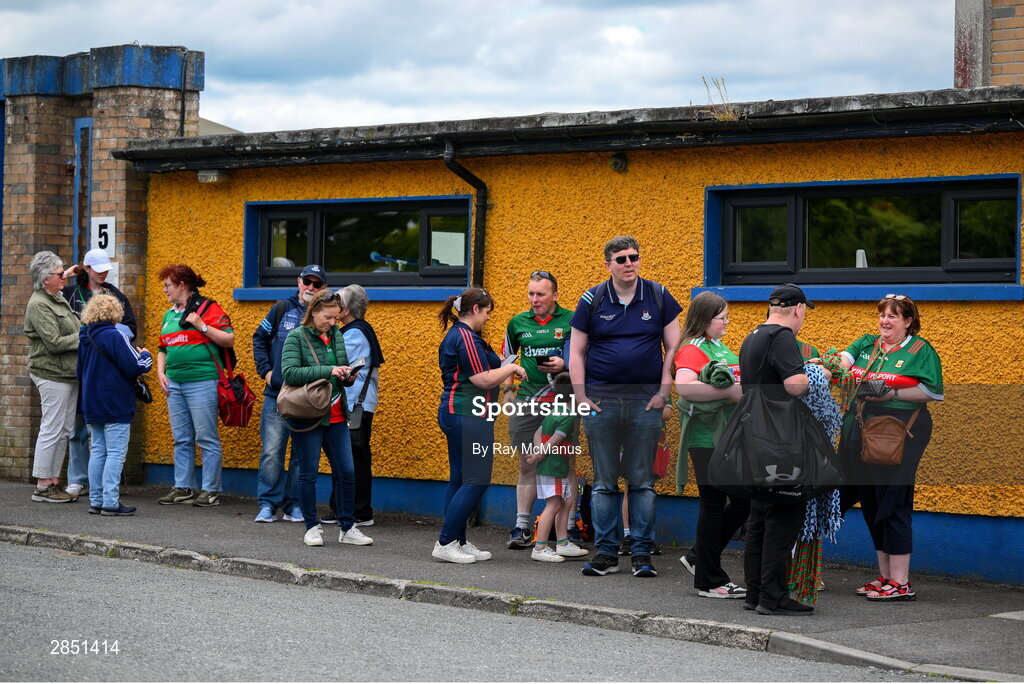 16 June 2024; Mayo and Dublin supporters wait for the turnstiles to open before the GAA Football All-Ireland Senior Championship Round 3 match between Dublin and Mayo at Dr Hyde Park in Roscommon. Photo by Ray McManus/Sportsfile