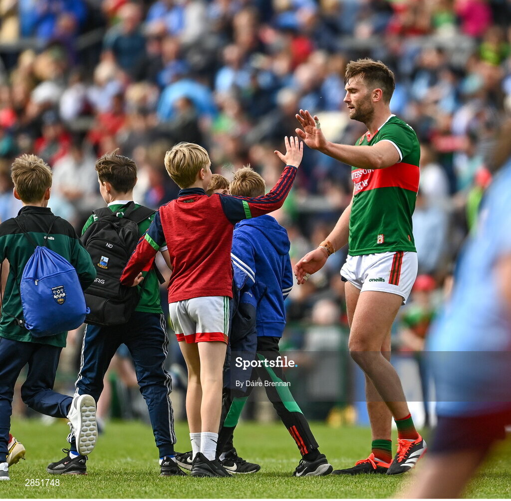16 June 2024; Aidan O'Shea of Mayo with supporters after the GAA Football All-Ireland Senior Championship Round 3 match between Dublin and Mayo at Dr Hyde Park in Roscommon. Photo by Daire Brennan/Sportsfile