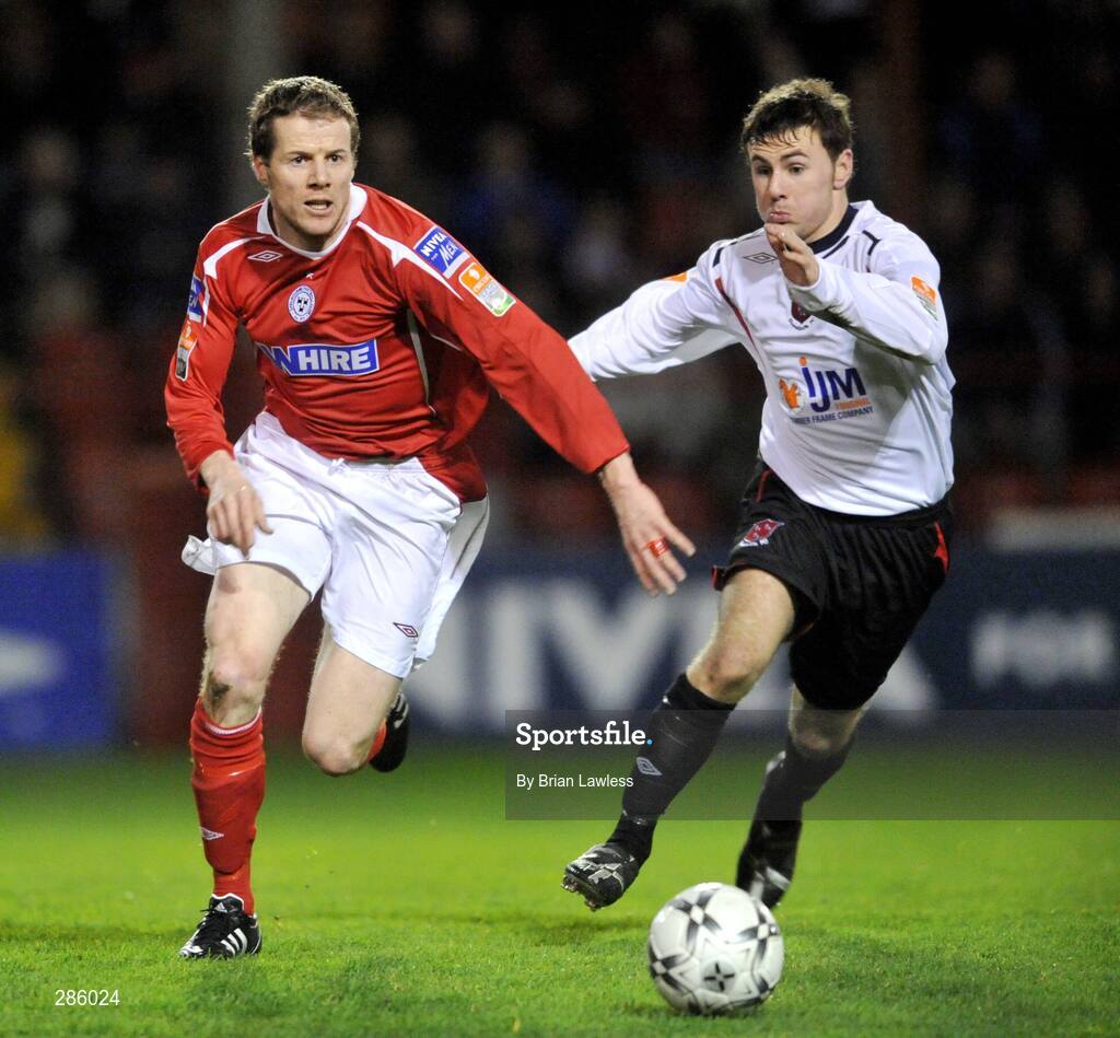 7 March 2008; James Keddy, Shelbourne, in action against David Cassidy, Dundalk. eircom League, First Division, Shelbourne v Dundalk, Tolka Park, Drumcondra, Dublin. Picture credit; Brian Lawless / SPORTSFILE