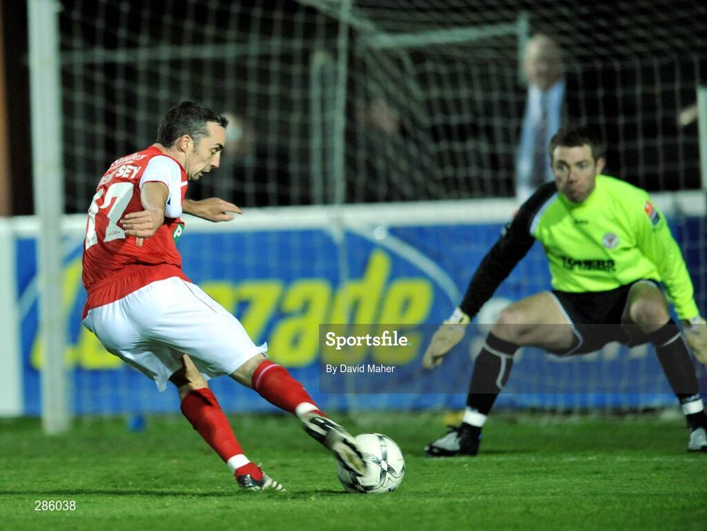 7 March 2008; Gary Dempsey, St. Patrick's Athletic, in action against Sligo Rovers goalkeeper Patrick Jennings. eircom League of Ireland Premier Division, St. Patrick's Athletic v Sligo Rovers, Richmond Park, Inchicore, Dublin. Picture credit; David Maher / SPORTSFILE